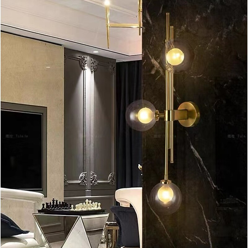 LED Wall Light 3 Lights Glass Wall Sconce Mid Century Modern Globe Wall Light Fixture Bathroom Vanity with Glass Shade Indoor Wall Sconce for Bedroom Living Room Corridor 10