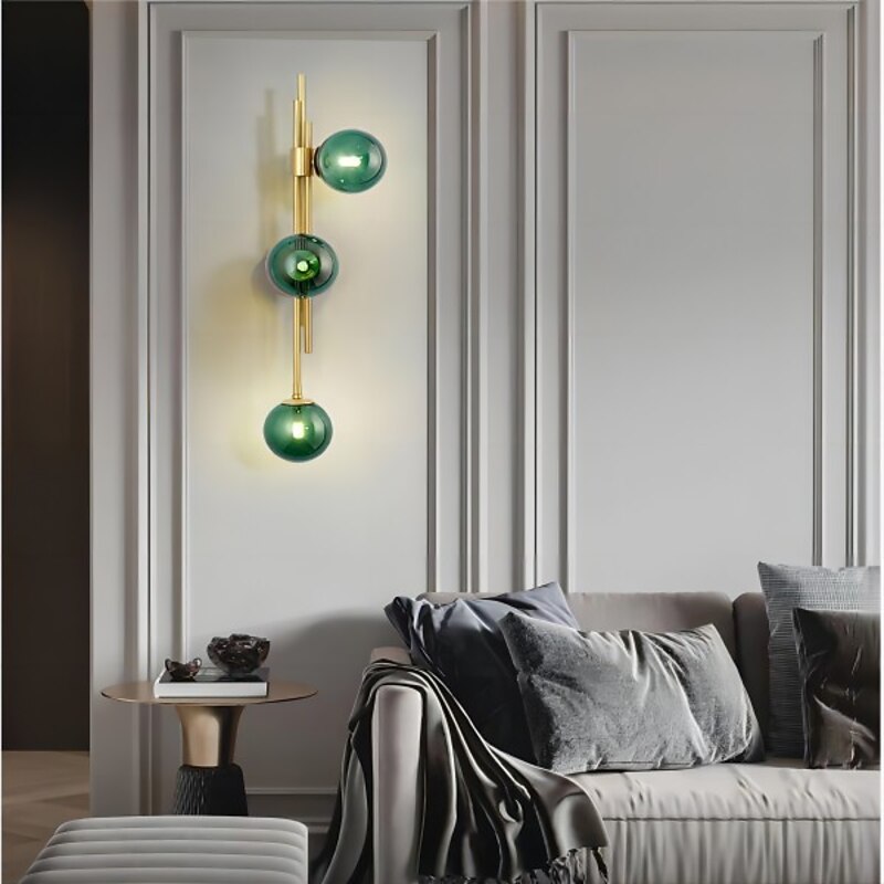 LED Wall Light 3 Lights Glass Wall Sconce Mid Century Modern Globe Wall Light Fixture Bathroom Vanity with Glass Shade Indoor Wall Sconce for Bedroom Living Room Corridor 9