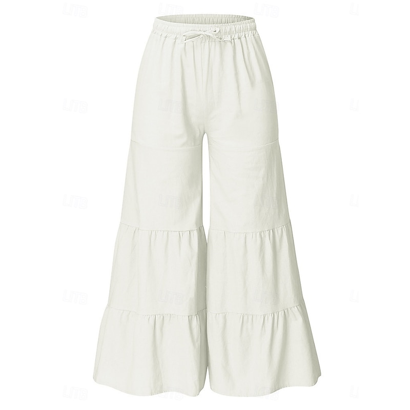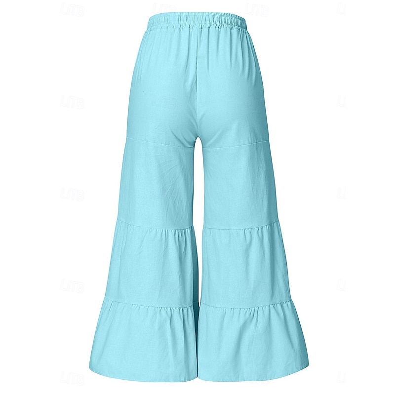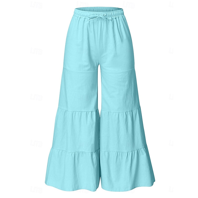 More information about Women's Wide Leg Chinos Fashion Streetwear Full Length High Waist Plain Pocket Elastic Waistband Comfy Soft Comfortable Micro-elastic Outdoor Street White Khaki Light Blue Summer Spring Regular Fit