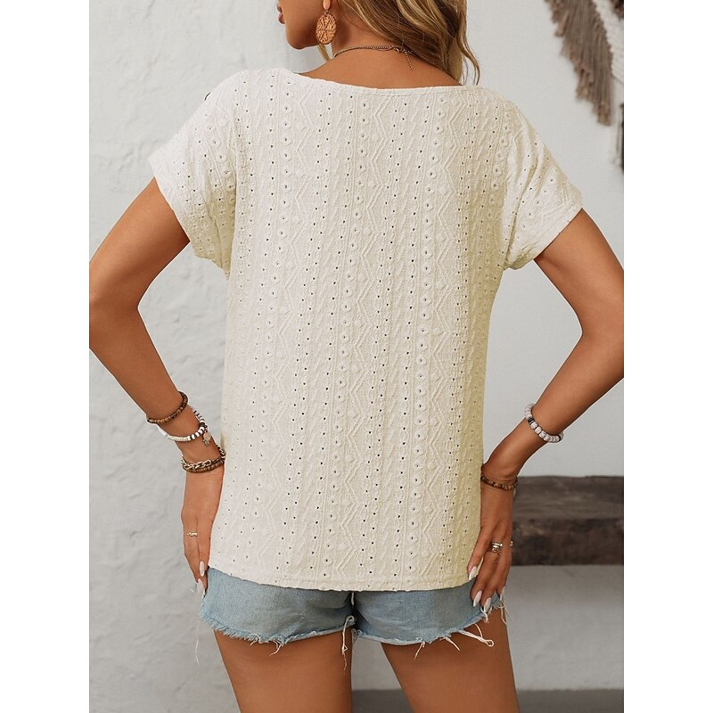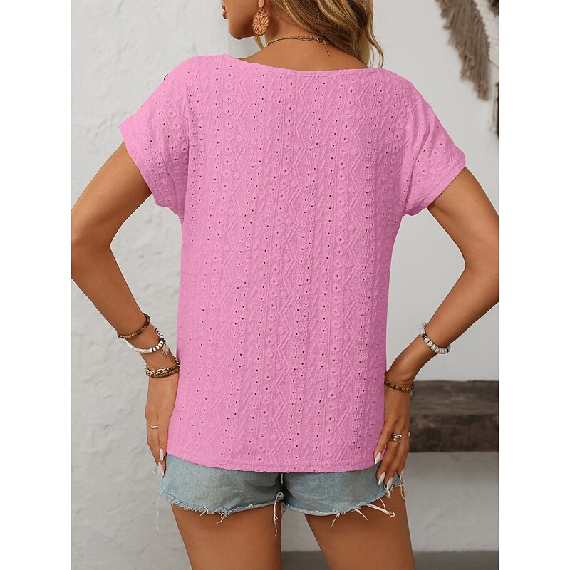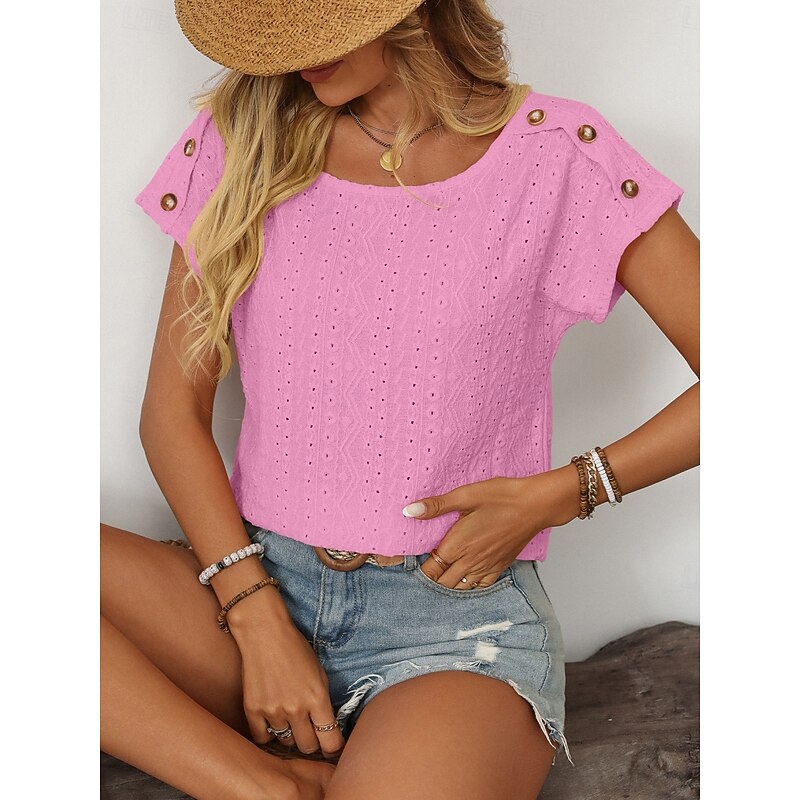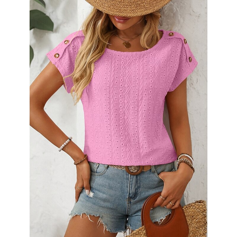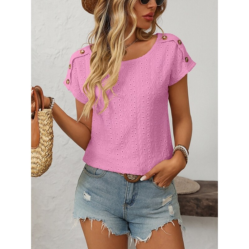 HOT ! Women's T Shirt Solid Color Plain Fashion Modern Casual Short Sleeve Crew Neck Regular Tops Daily Weekend Buttons Black White Pink Beige Summer