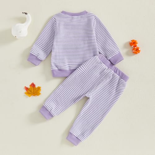 Kupretty Toddler Baby Girl Fall Clothes Halloween Outfit Cute Ghost Embroidery Striped Waffle Knit Sweatshirts + Pants Set