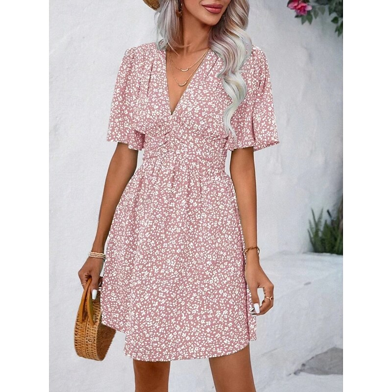 Women's Mini Dress A Line Dress Casual Outdoor Going out Standard Fit Floral Short Sleeve V Neck Black Pink Blue Purple Summer 2