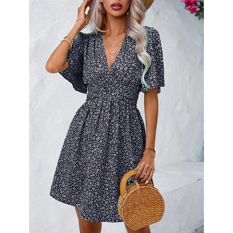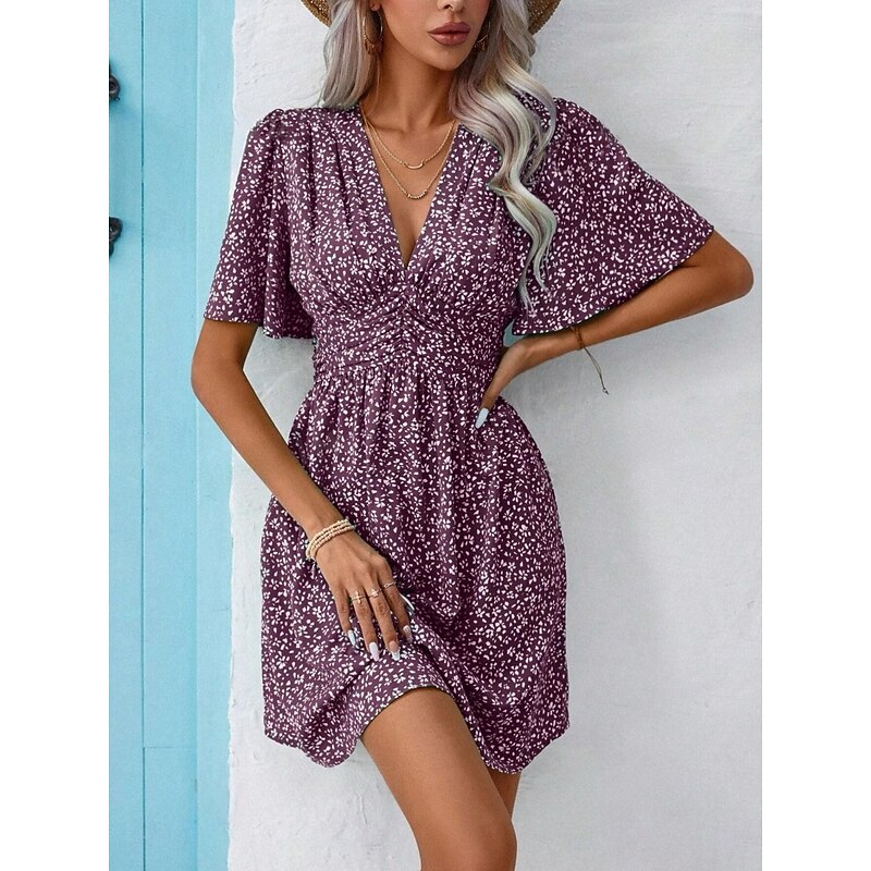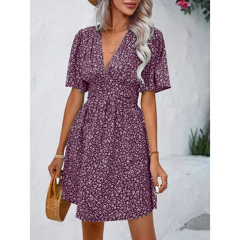 More information about Women's Mini Dress A Line Dress Casual Outdoor Going out Standard Fit Floral Short Sleeve V Neck Black Pink Blue Purple Summer
