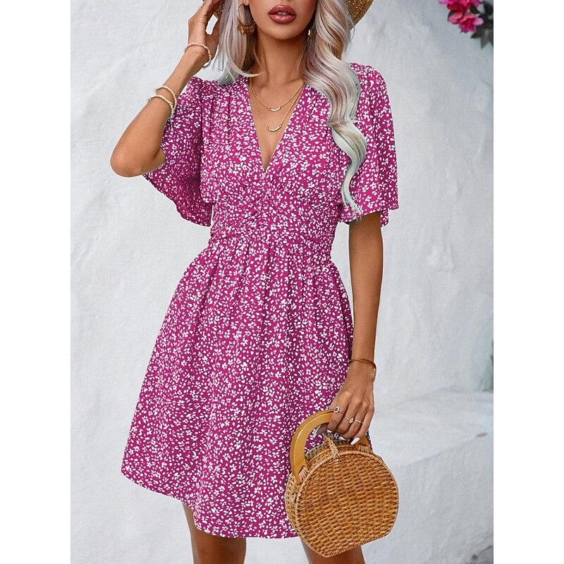 Women's Mini Dress A Line Dress Casual Outdoor Going out Standard Fit Floral Short Sleeve V Neck Black Pink Blue Purple Summer 15