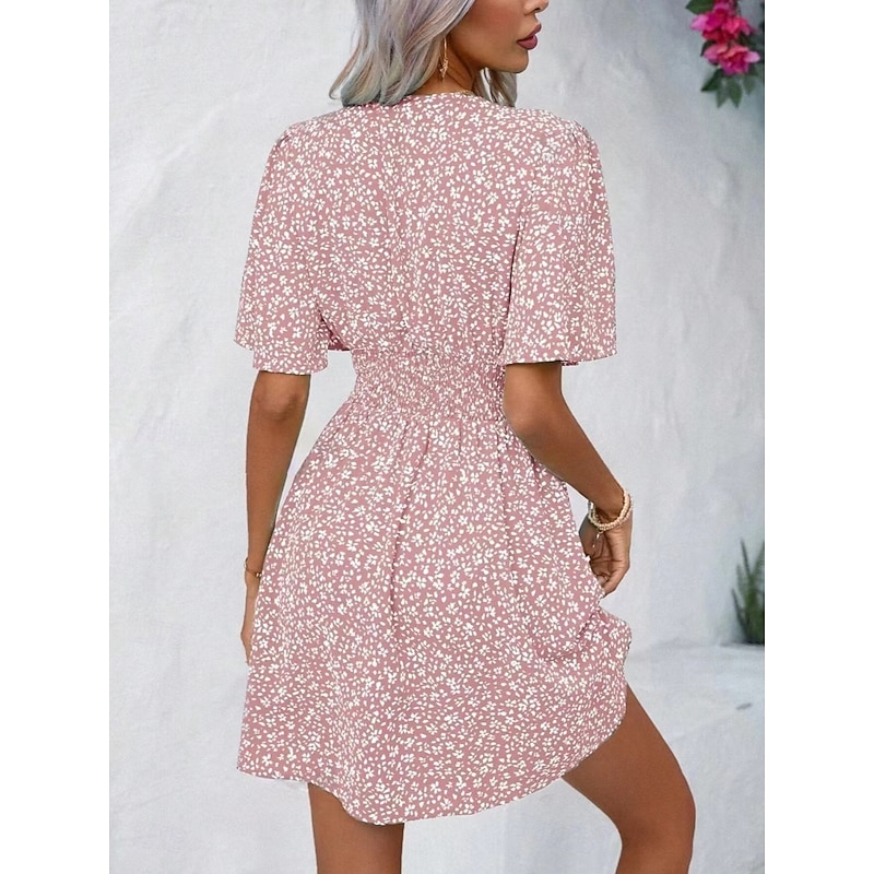 Women's Mini Dress A Line Dress Casual Outdoor Going out Standard Fit Floral Short Sleeve V Neck Black Pink Blue Purple Summer 7
