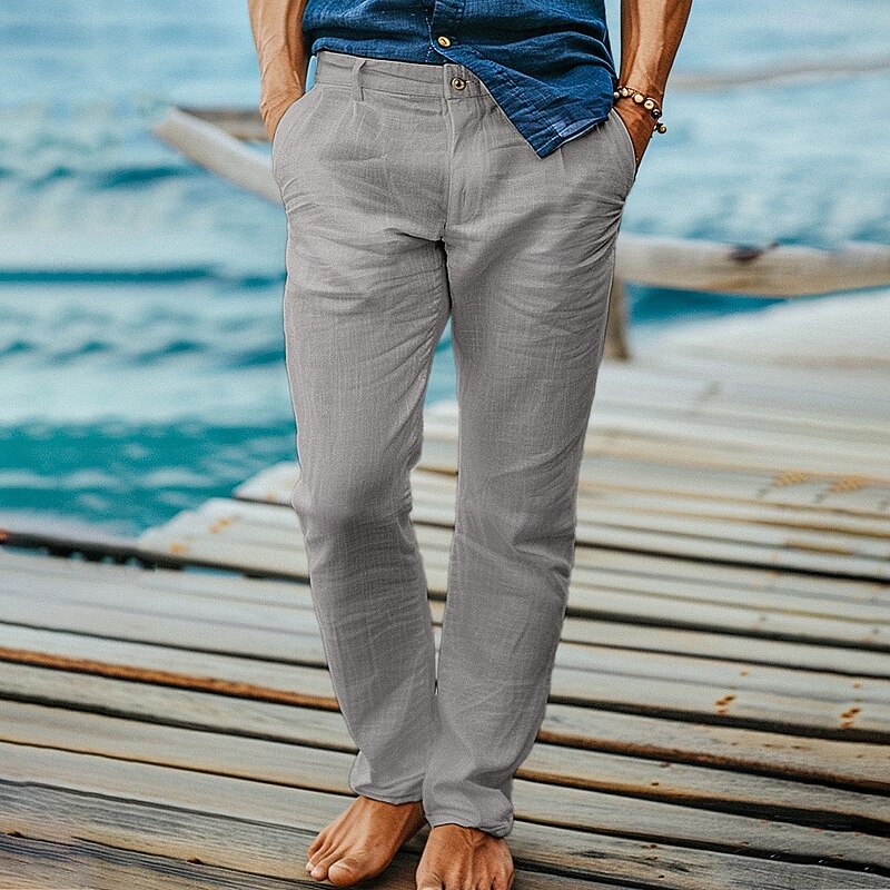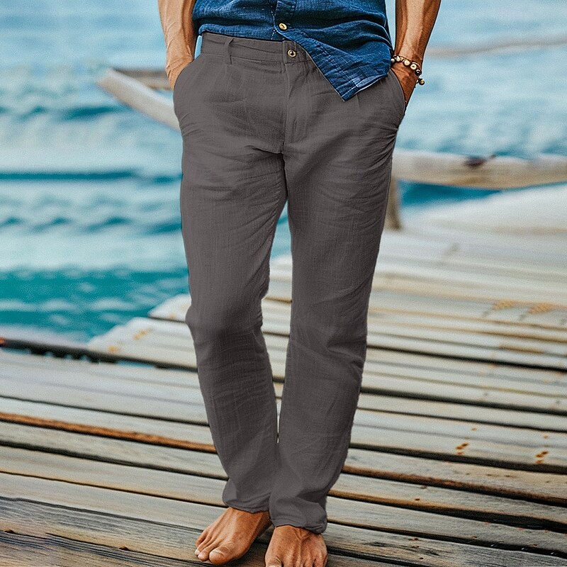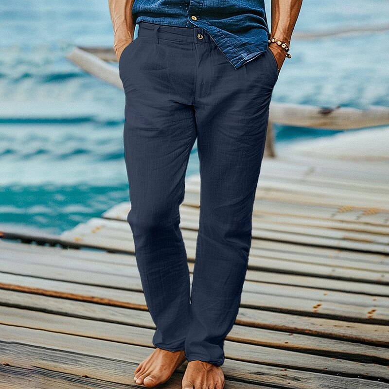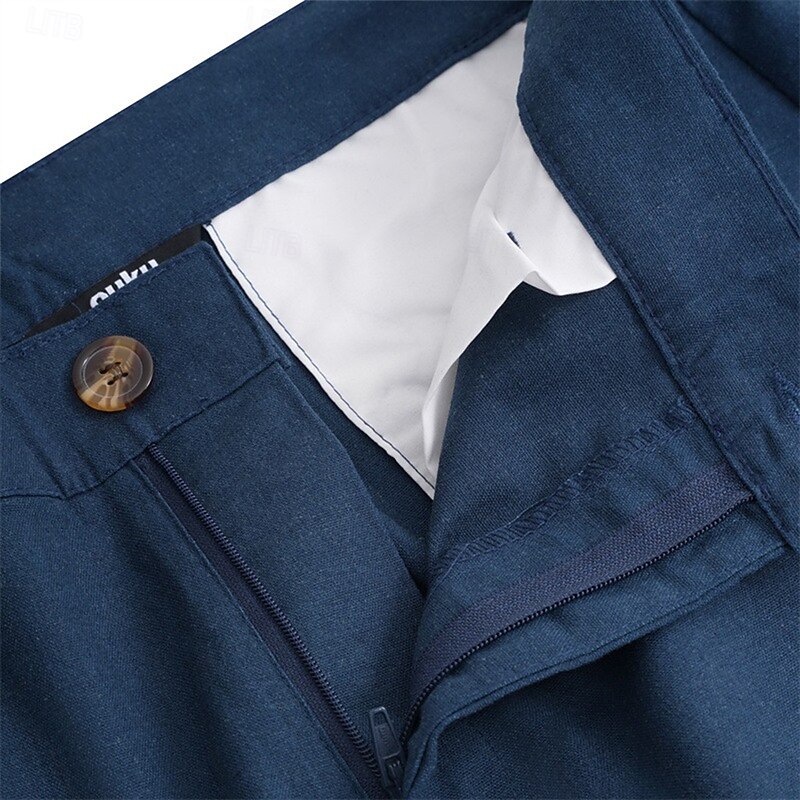 Highlights [Fabric] : Crafted from a high-quality linen-cotton blend, these men's trousers offer a soft, breathable fabric ideal for warm weather. The lightweight material allows for easy movement and airflow, perfect for maintaining comfort in the heat. [Fit] : Designed with a regular fit, these trousers provide a relaxed yet tailored silhouette. The straight-leg cut ensures a versatile look that complements various styles and occasions, from casual to more formal settings. [Design Highlights] : These pants feature a iconic front pocket design and a zip-fly closure with a button, adding practicality to style. The straight-leg design offers a timeless appeal, making them an essential addition to any wardrobe. [Occasions] : Ideal for both formal and holiday settings, these trousers are perfect for business meetings, beach outings, or summer gatherings. Their combination of comfort and style makes them suitable for a variety of events, ensuring you look effortlessly fashionable. [Size] : Available in a range of sizes from S to 3XL, these trousers ensure a comfortable fit for a variety of body types. The mid-waist design further enhances comfort and wearability, making them a go-to choice for everyday wear. Perfect for everyday use. superior materials and excellent craftsmanship ensure long-lasting durability.
