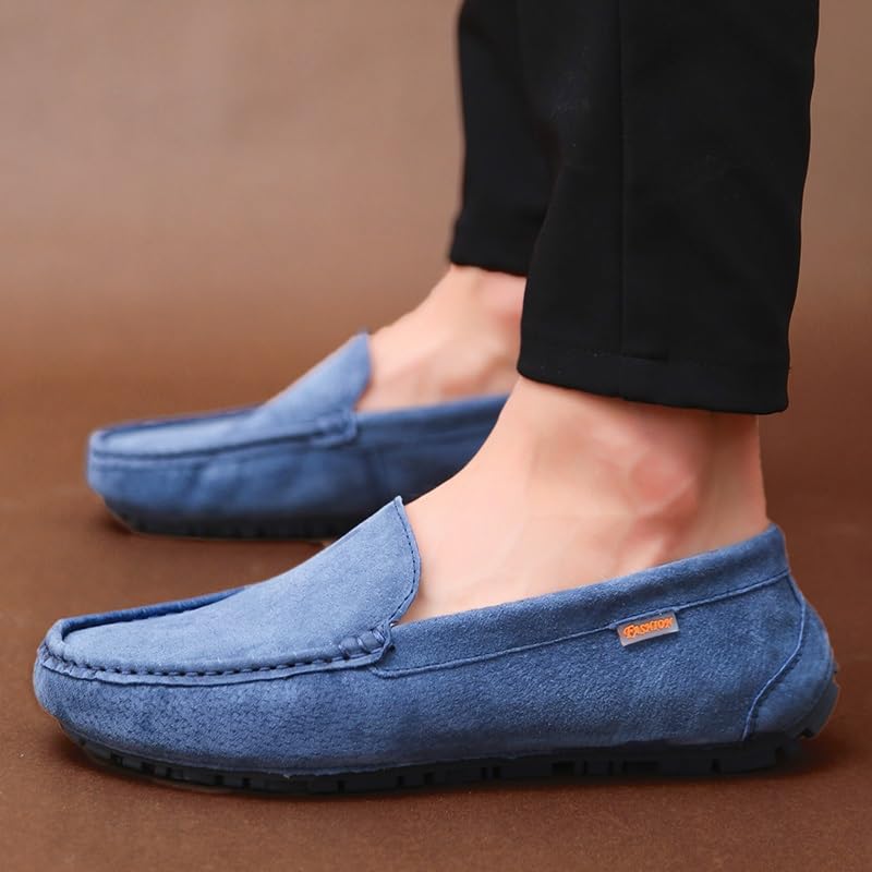 Mens Loafers Shoe Round Toe Suede Vamp Driving Loafers Flexible Slip Resistant Anti-Slip Casual Slip-ons