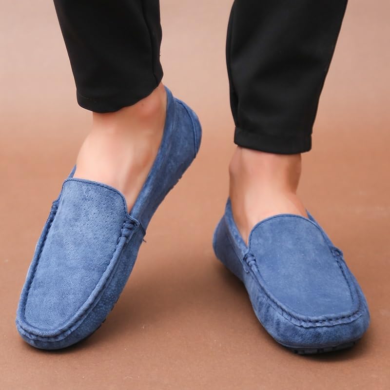 HOT ! Mens Loafers Shoe Round Toe Suede Vamp Driving Loafers Flexible Slip Resistant Anti-Slip Casual Slip-ons