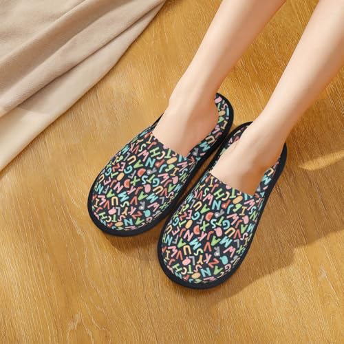 HOT ! Alphabet Print Women'S Fuzzy Slip On Indoor Outdoor Winter House Slippers