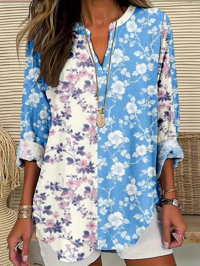 Why Choose Women's Blouse Floral sleek present-day Long Sleeve V Neck Regular Tops Daily Holiday Print Yellow Pink Blue Green Summer?