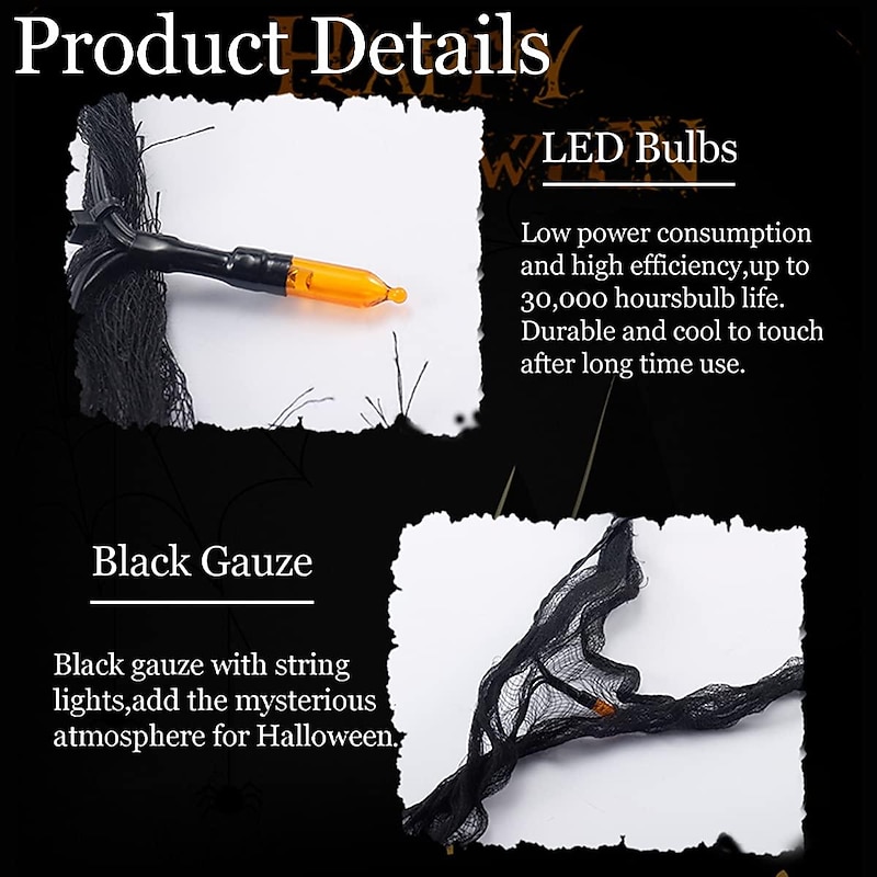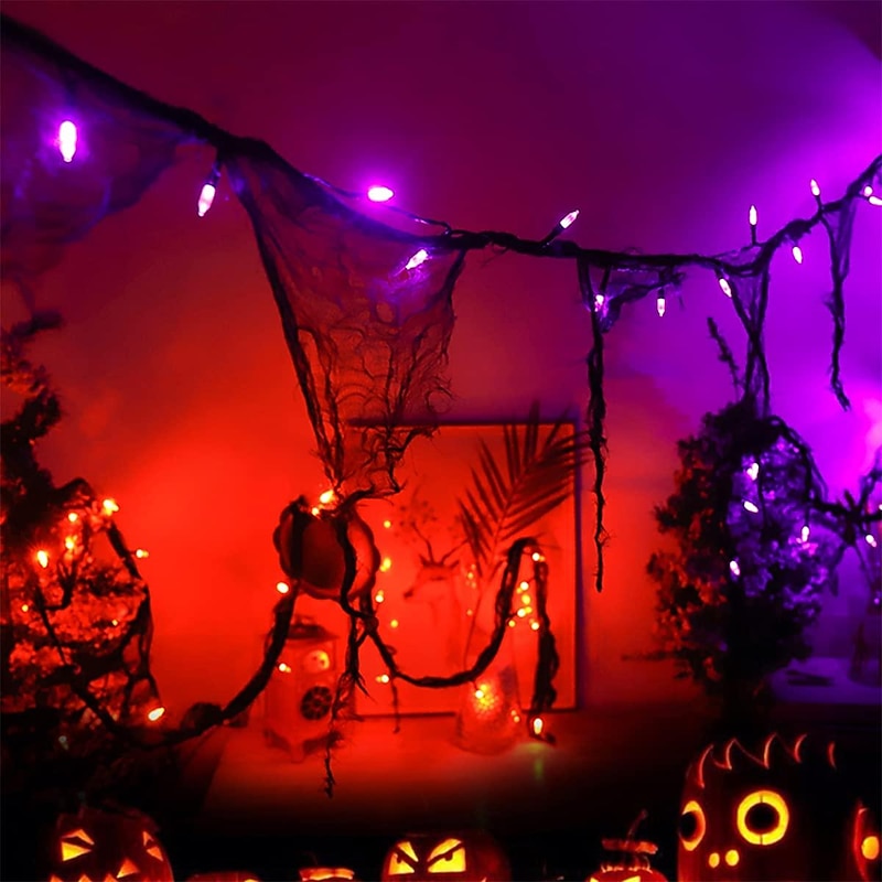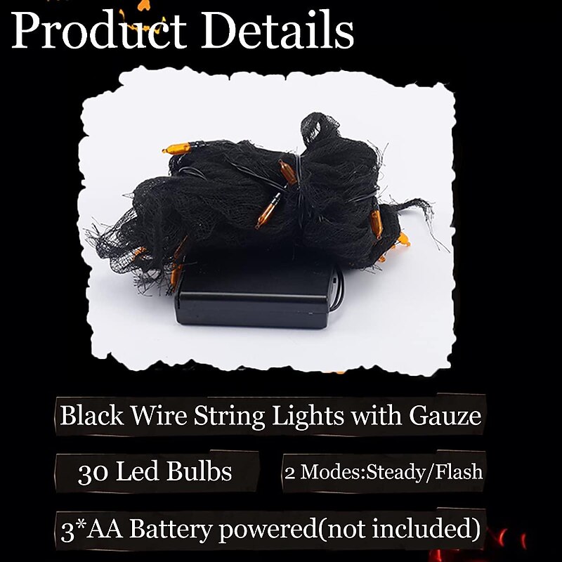 HOT ! Halloween String Lights Indoor 30LED Orange Decorations with Black Gauze Battery Operated 9.9Ft Creepy Cloth Spooky Lights Gothic Party Room Decor 2 Modes Steady/Flickering Lights