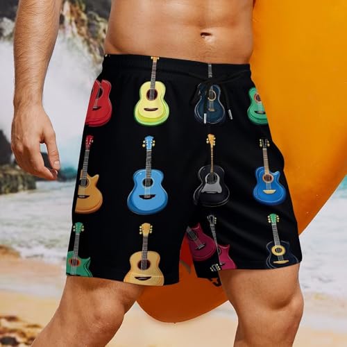 Music Guitar Mens Swim Trunks with Compression Liner Quick Dry Board Beach Shorts 3