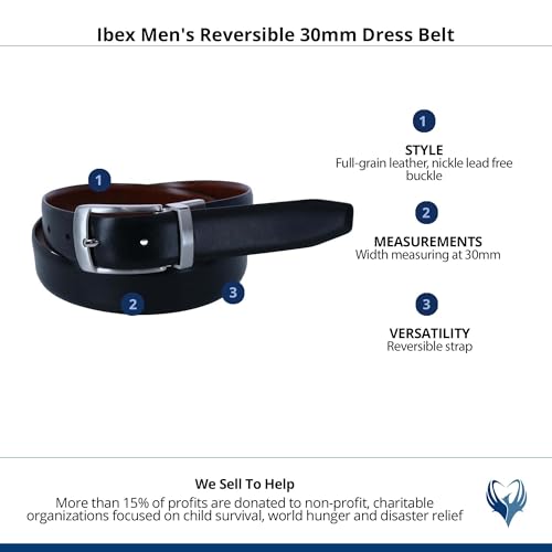 HOT ! Ibex England Men's Reversible 30mm Dress Belt