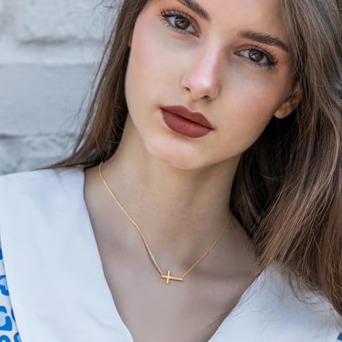Material: 14kMetal type: 14kClasp type: LobsterGem type: No Gemstone[A BOLD DESIGN ON THE CLASSIC CROSS] This gold necklace for women breaks from tradition with a rare sideways cross design. Defined by clean lines and a geometric silhouette, the gold plated necklaces for women is ideal for modern women who appreciate minimal aesthetics with a touch of distinction[ADJUSTABLE CHAIN LENGTH] Featuring a 16.5-inch main chain and a 2-inch extender, this gold pendant necklaces for women offers flexible wear. Whether you're styling this womens necklaces with a low neckline to fully showcase the pendant, or layering the gold cross chain over higher necklines, the adjustable length fits into any wardrobe[STYLE-FRIENDLY FOR EVERYDAY WEAR] From a crisp white shirt to a casual tee or even a delicate evening dress, this 14k gold plated necklaces for women adds a refined highlight without overwhelming your outfit—your go-to gold necklaces for women for polished daily style[CREATE YOUR OWN LOOK] This gold plated cross necklace for women is ideal for stacking. Pair this gold cross necklaces for women with dainty chains, Y-necklaces, or other pendants to play with shapes and lengths. The sideways gold cross pendant becomes a subtle statement piece that enhances your one-of-a-kind style[A THOUGHTFUL PRESENT WITH UNIQUE MEANING] Its non-traditional design and minimalist beauty make this sideways cross necklace for women a meaningful present. The sideways cross necklaces is ideal for giving to friends or loved ones as a reminder of your connection Perfect for everyday use. superior materials and excellent craftsmanship ensure long-lasting durability.
