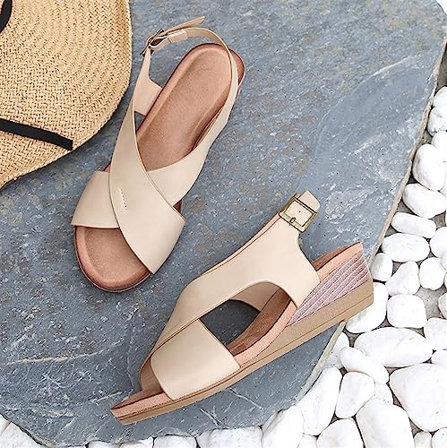 Crossover Wedges Rome Sandals for Women's Lady Simplicity Lightweight Anti Slip Dress Shoes with Arch support Adjustable Buckle Slip On Slipper