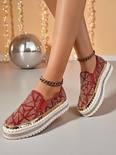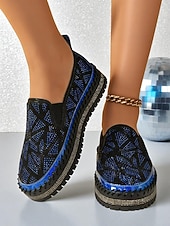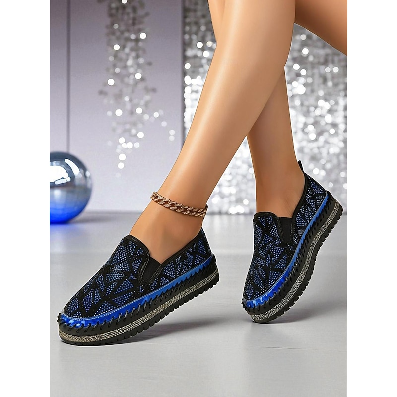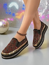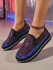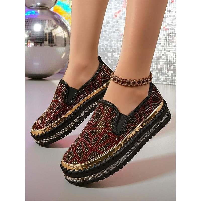 More information about Women's Black Gold Rhinestone Slip-On Platform Loafers, Sparkly Chunky Sole Party Shoes for Nightlife & Club Outfits