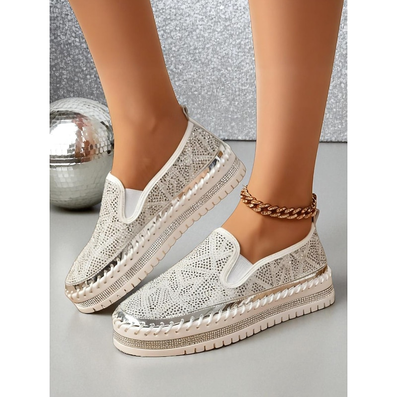 Highlights - Upper materials made of sparkling glitter for a glamorous touch - Lining materials crafted from synthetic leather for durability - Embellished with rhinestones for added elegance - Features a stylish round toe shape - Outsole made of rubber for comfort and traction - Stay on-trend with glitter, crystal, sequined, and jeweled details in 2025