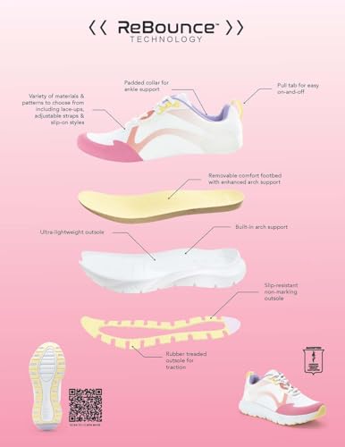• SLIP RESISTANT. Built to last, the ReBounce athletic shoes do not compromise on fashion or function. The ultra lightweight construction allows you to stay light on your feet, enhancing your agility and movement. Meanwhile, the rubber treaded slip resistant outsole provides excellent traction on various surfaces, making it a reliable choice for indoor and outdoor. Experience the freedom to conquer your day while looking effortlessly minimalistic and chic.