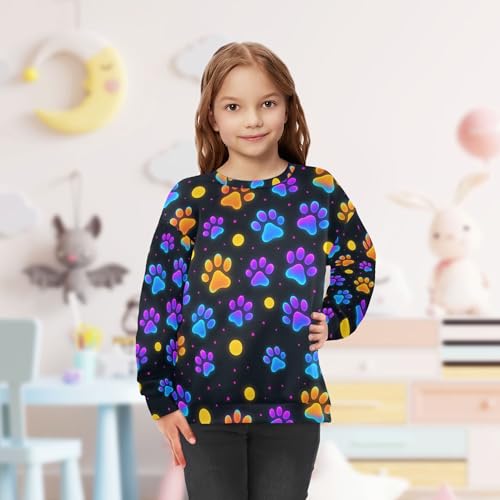 JUNZAN Neon Paw Print Little Girls Sweatshirt Hoodie Long Sleeve Outerwear for Kids Athletic 4T 5