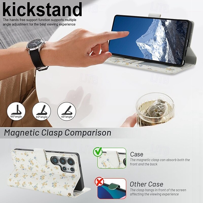 More information about Phone Case For Samsung Galaxy S25 S25 Edge S24 S24 FE S23 Ultra Plus S22 Plus Ultra A16 A55 5G A35 5G A25 Wallet Case with Stand Holder with Lanyard Card Slot Flower Floral TPU PU Leather