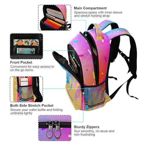 Ice Cream with Gradient Color Backpacks with Chest Strap,Lightweight Bookbags 17 Inch, Casual Daypack Bags 6