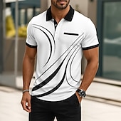 More information about Men's Line Polo Short Sleeve Polo Shirts Collared Shirts Business Casual Business Athleisure Daily Wear Pocket 3D Print Buttons Summer Purple Green Black-white