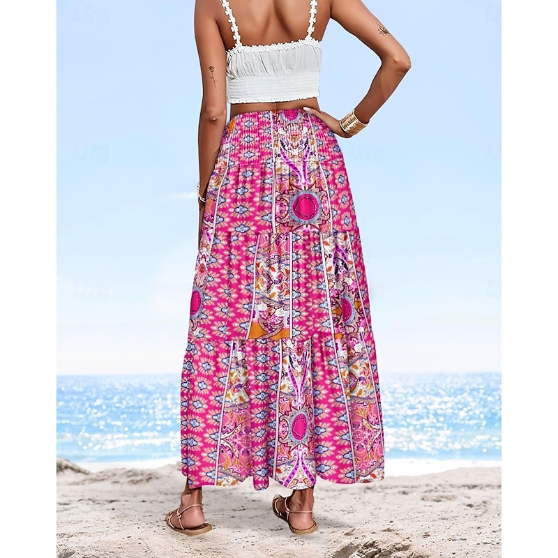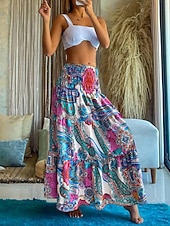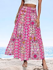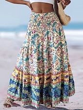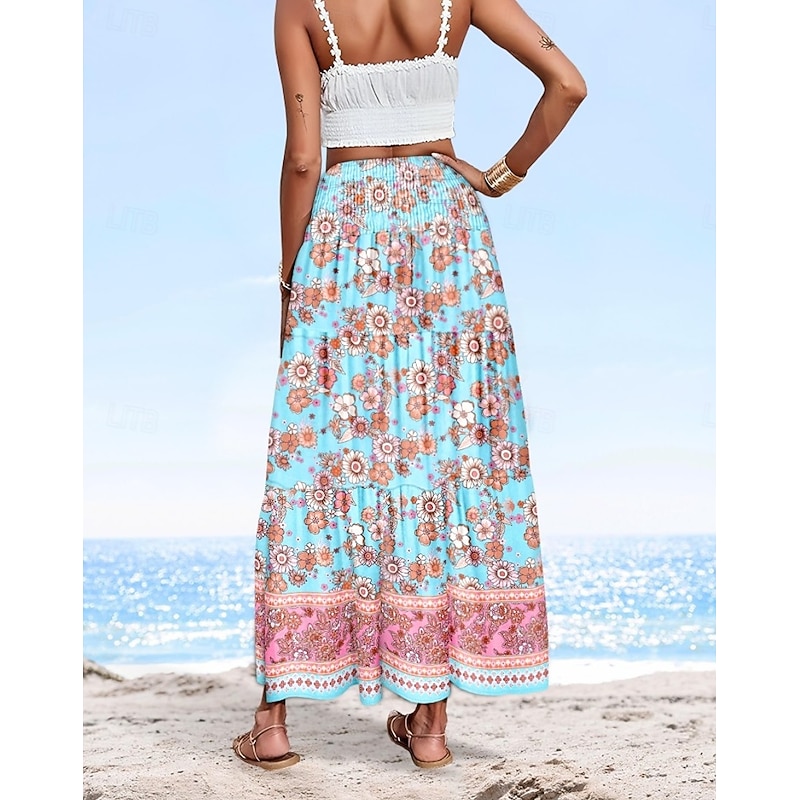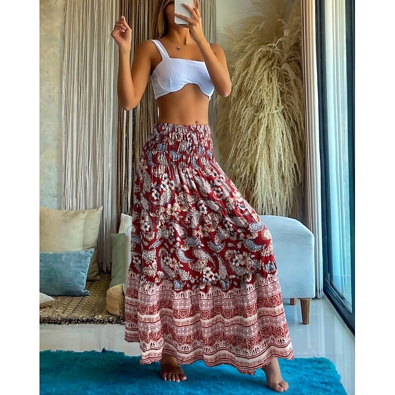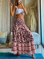 More information about Women's Long Skirt Elegant Maxi High Waist Skirts Floral Geometric Ruched Print Flowy Inelastic Going out Casual Daily Black Red Blue Sky Blue Summer Polyester