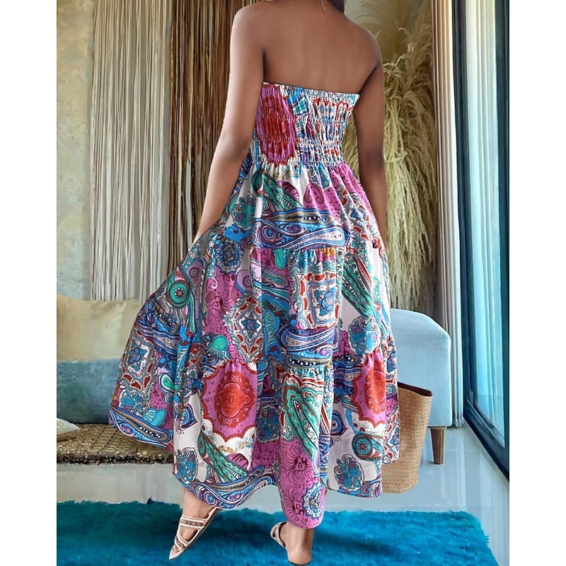 Women's Long Skirt Elegant Maxi High Waist Skirts Floral Geometric Ruched Print Flowy Inelastic Going out Casual Daily Black Red Blue Sky Blue Summer Polyester 11