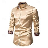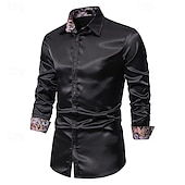 More information about Men's Shirt Satin Shirt Casual Shirt Button Up Shirt Paisley Wedding Vacation Black Champagne Navy Blue Long Sleeve Collar Spring & Fall Clothing Apparel