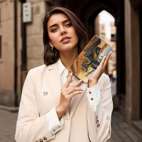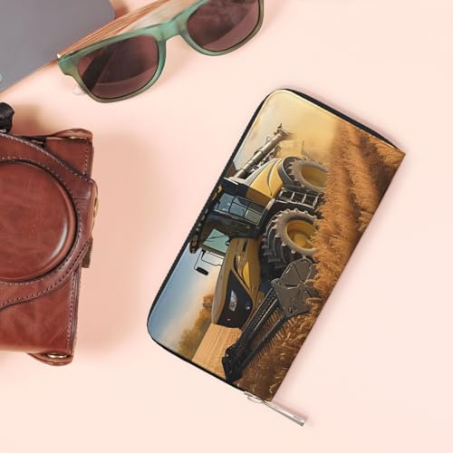 Pu Leather Wallet For Women Girl, Zip Around Credit Card Holder Farm Tractor Harvest Long Wallet Clutch Purse Waterproof Travel Handbag