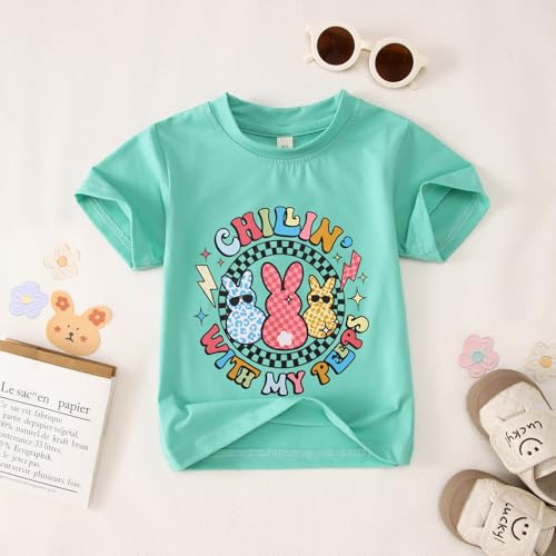 Toddler Baby Boy Girl Easter Shirt Cute Bunny Graphic T-Shirt Funny Chillin' with My Peeps Tee Short Sleeve Tops 4