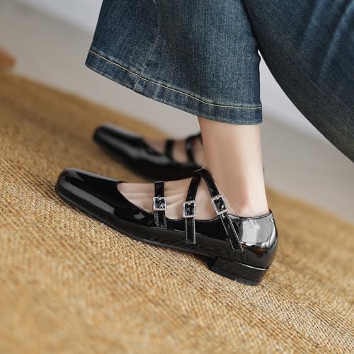 • CLASSIC MARY JANE DESIGN: These women’s Mary Jane flats feature a timeless square toe and adjustable strap, combining vintage charm with modern elegance.