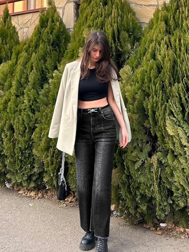 • Jeans for Women Trendy - These high waist wide leg jeans are suitable for women to wear, such as tank tops, T-shirts, sweaters, jackets, blazers, smocks, flats, heels, sandals, etc. Can be worn with a variety of styles such cowboy cowgirl style, paired with T shirts and Martin boots. Baggy jeans look good on any woman.