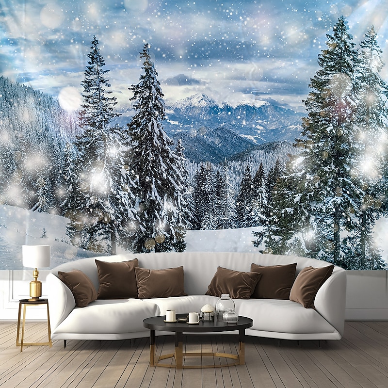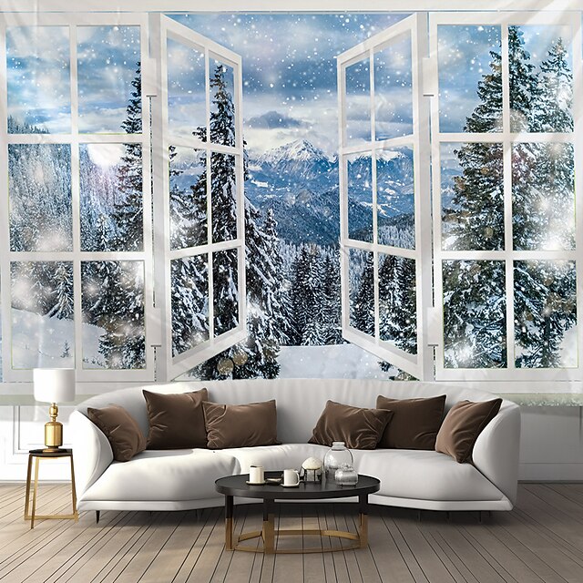HOT ! Snow Window View Landscape Hanging Tapestry Wall Art Mountain Large Tapestry Mural Decor Photograph Backdrop Blanket Curtain Home Bedroom Living Room Decoration
