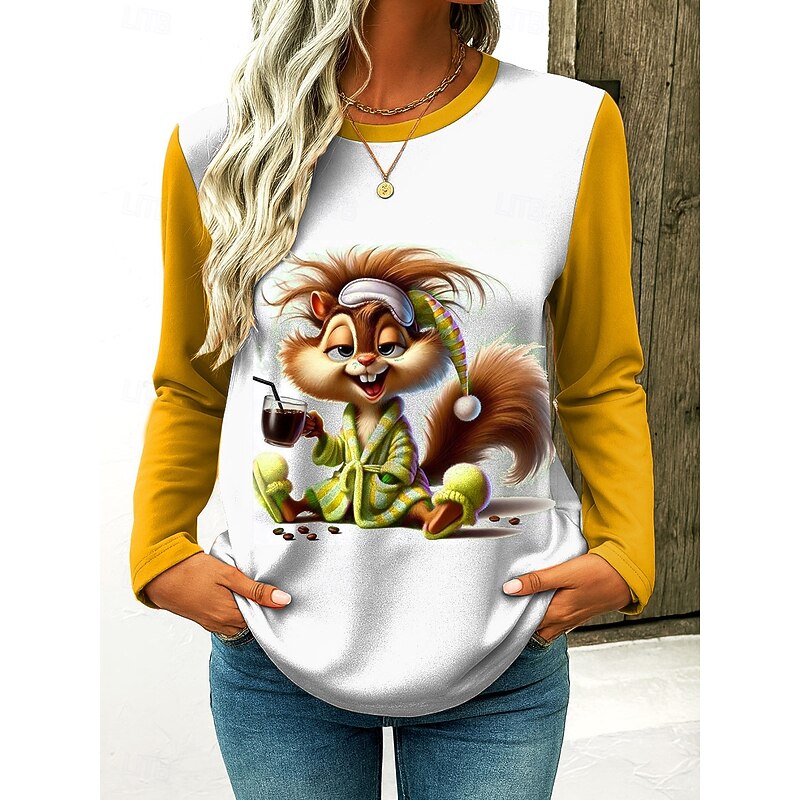 This Women's T Shirt Graphic Cartoon Vintage fashionable Classic Long Sleeve Crew Neck Regular Tops Daily Print Yellow Pink Blue Green Spring Fall Winter combines elegant design with practical functionality. Every detail has been carefully considered to ensure you get the best possible experience. The top-grade construction means this product will serve you well for years to come.