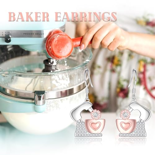 HOT ! Baker Dangle Earrings for Women - 925 Sterling Silver Whisk Baking Jewelry for Baker Lover Pastry Chef Dangle Drop Earrings Hypoallergenic Gift for Culinary Students Daughter Granddaughter