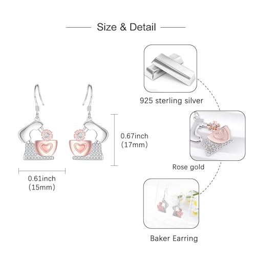 Baker Dangle Earrings for Women - 925 Sterling Silver Whisk Baking Jewelry for Baker Lover Pastry Chef Dangle Drop Earrings Hypoallergenic Gift for Culinary Students Daughter Granddaughter 4