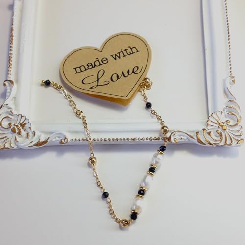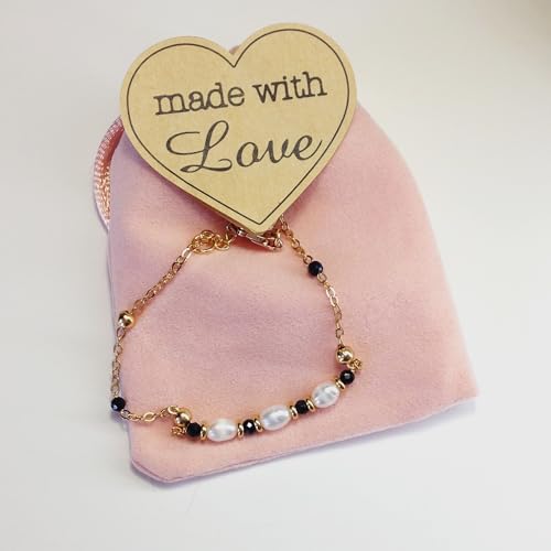 • NON-TARNISH JEWELRY: Designed to maintain its shine, this gold chain pearl and black spinel bracelet is non-tarnish, ensuring it stays beautiful over time. Perfect for everyday wear and special occasions