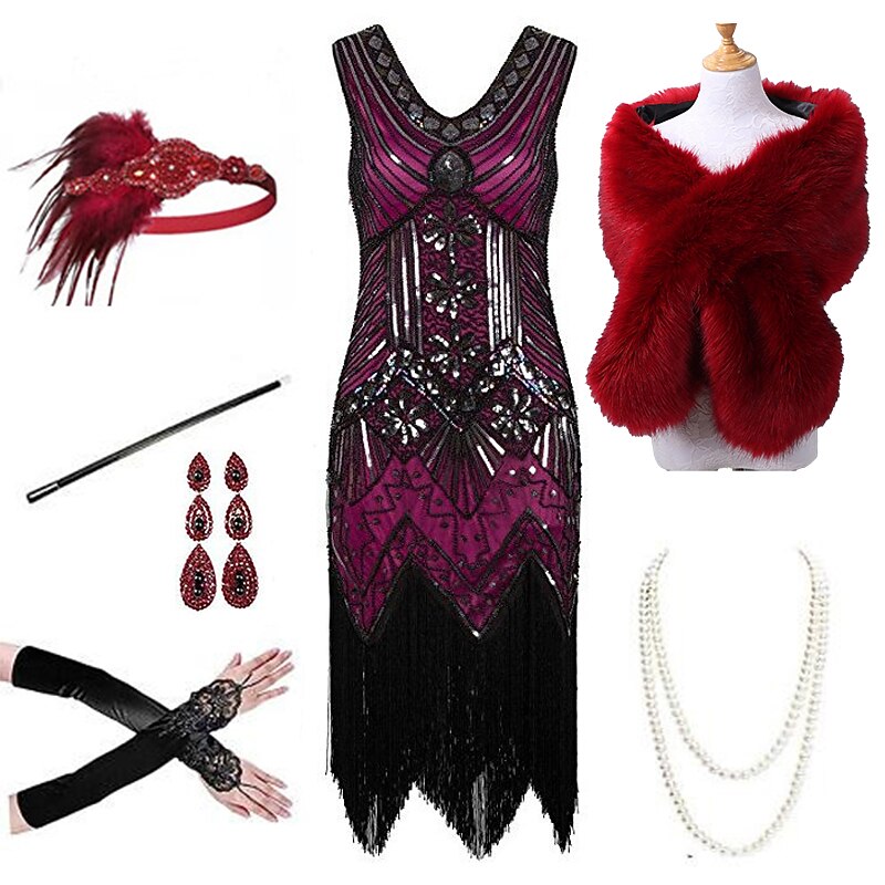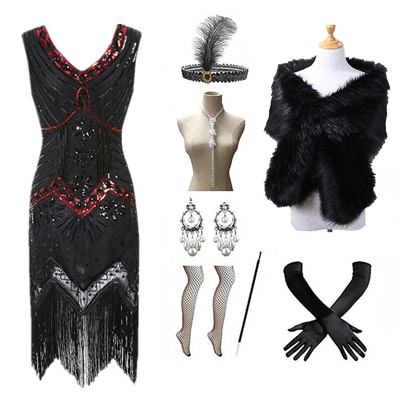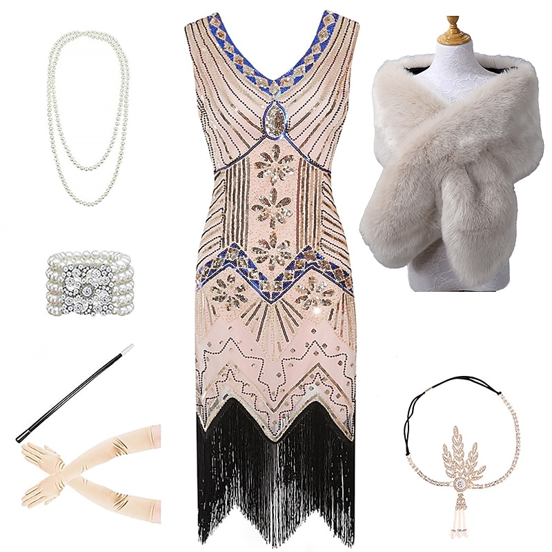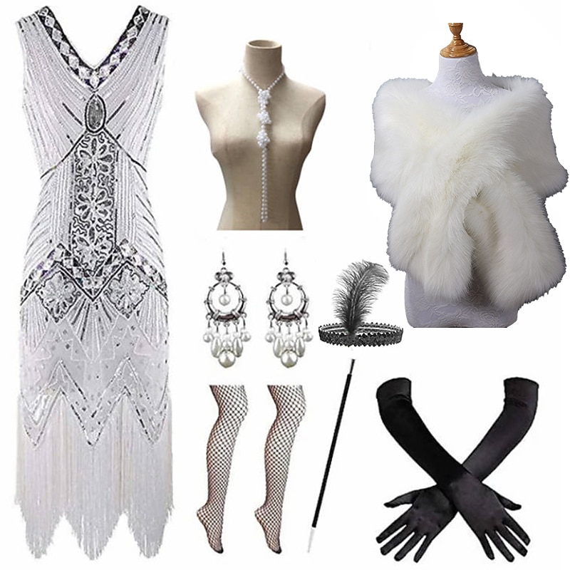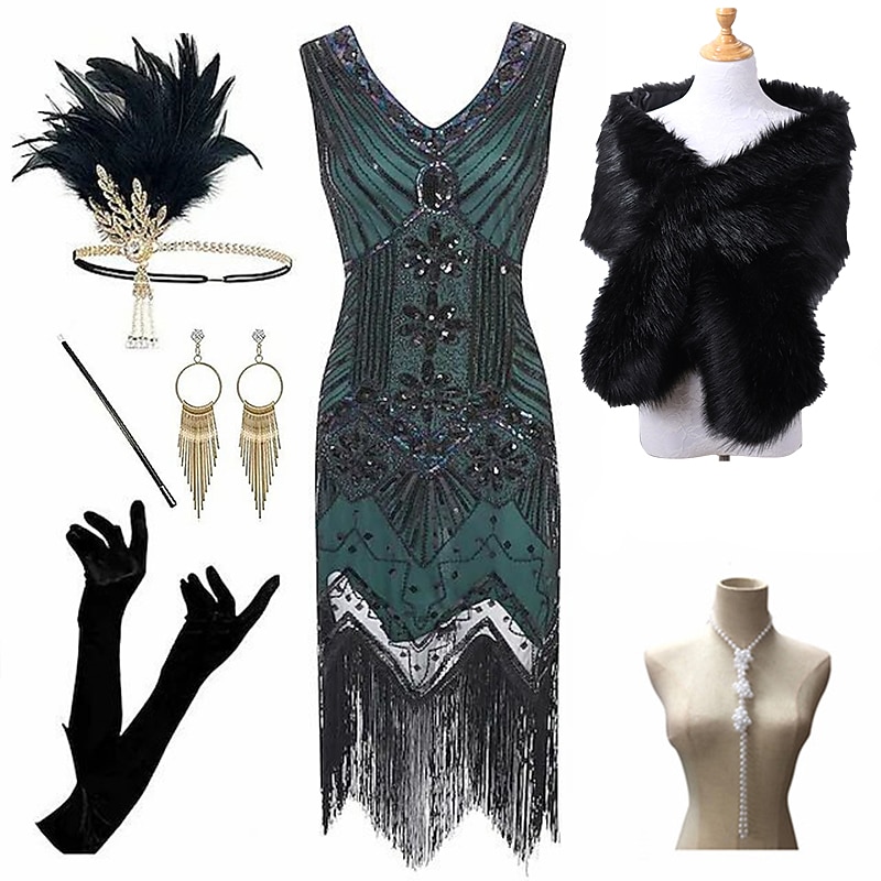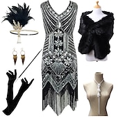 $94.99 - Set with Flapper Dress Feather Headband Faux Fur Long Gloves Necklace Earrings Cigarette Holder Shawl Outfits Vintage Cocktail Dress The Great Gatsby Women's Cosplay Costume New Year Christmas Party 2025. Shop for cheap Outfits online? Buy at lightinthebox.com on sale today!
