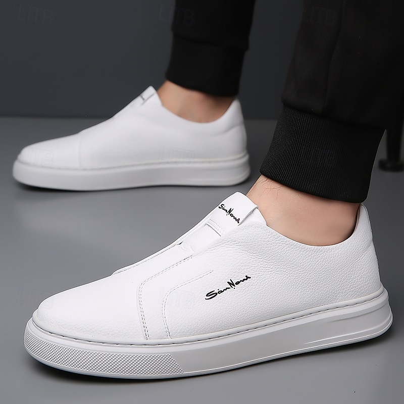 Men's White Slip-On Sneakers Minimalist Casual Shoes for Daily Wear Travel and Work 24