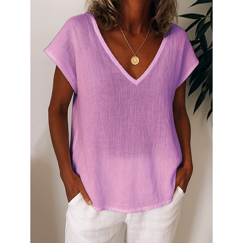 More information about Women's T Shirt Solid Color Plain Casual Short Sleeve Round Neck Regular Tops Daily Going out Weekend Print White Yellow Light Green Purple Summer Spring