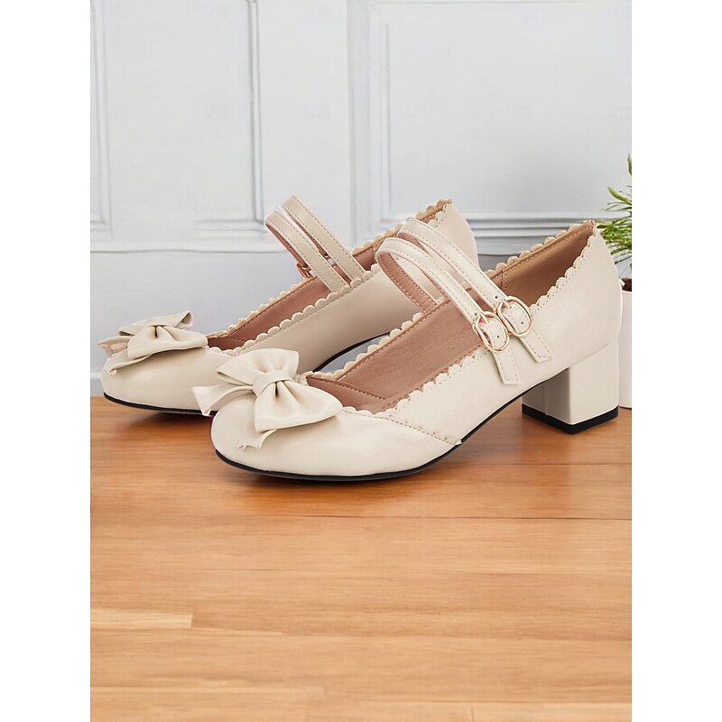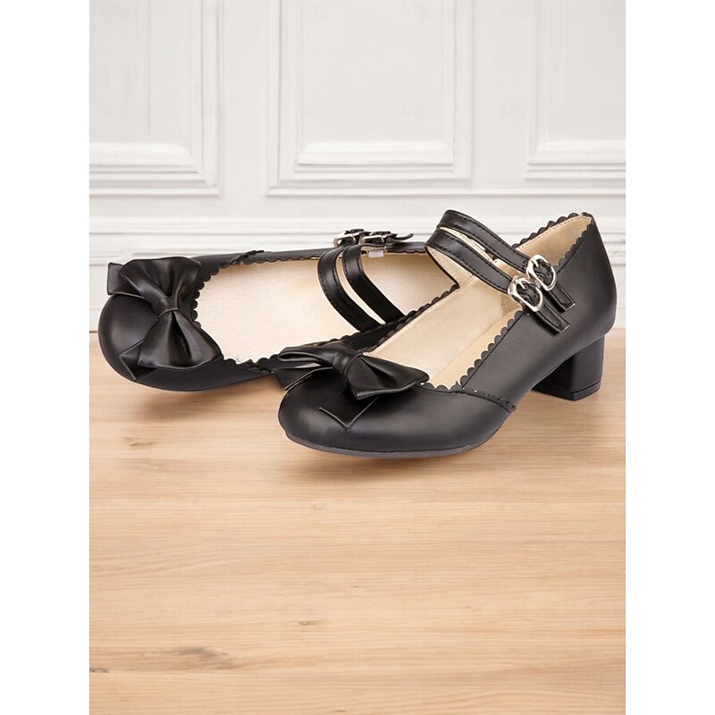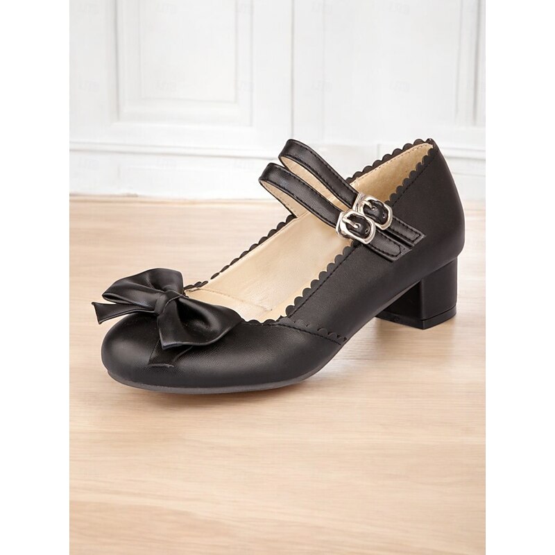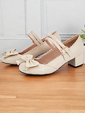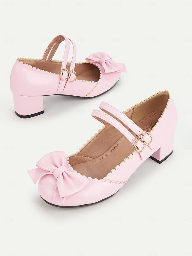Highlights - first-class PU upper material - sophisticated embellished bowknot detail - Comfortable synthetic leather lining - Chunky heel for stability and style - Classic round toe shape - Durable rubber outsole - Perfect for daily wear