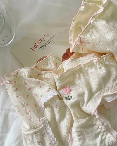 Japanese Anime Cotton Panties for Women Teen Girls Ruffle Trim Mid-rise Comfy Fit 4-Pack Cute Floral Underwear 1