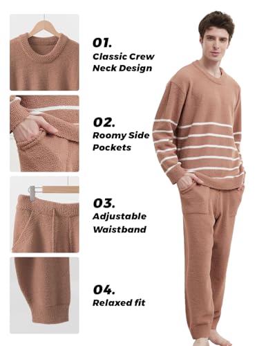 Men's Fuzzy Fleece Pajama Set Warm and Cozy Long Sleeve Top and Bottom Nightwear Lounge Set Mens Pjs Sets with Pockets 6