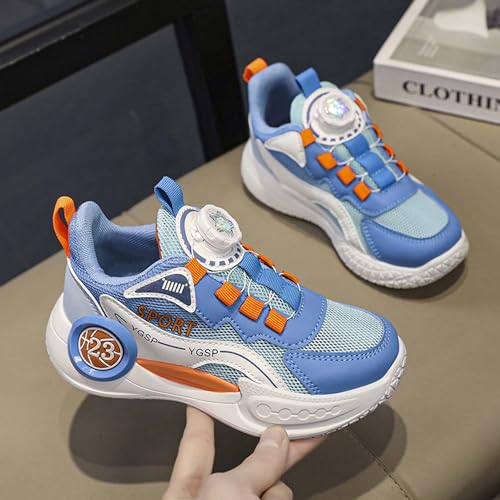 Kids Rotate Buckle Fashion Sneakers Mesh Fabric Breathable Walking Shoes Rubber Sole Non Slip Comfortable Running Shoes Lace Up Low Top Wear Resistant and Durable Travel Shoes Amusement Park Garden 6