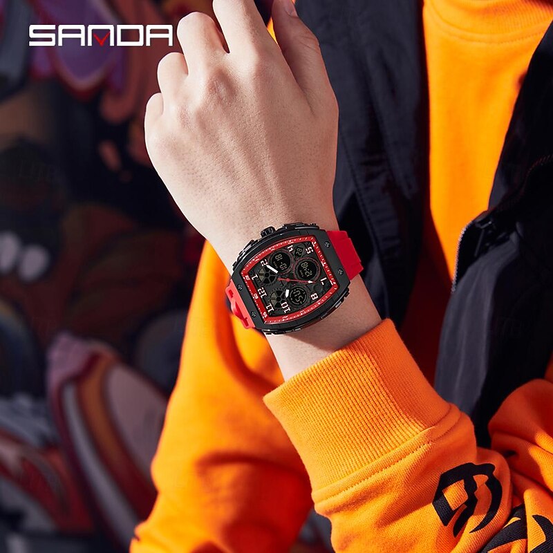 SANDA Men Digital Watch Outdoor Sports Fashion Wristwatch Luminous Stopwatch Alarm Clock Countdown Silicone Gel Watch 12