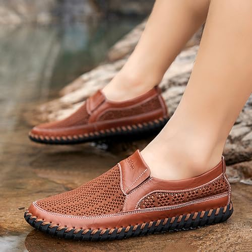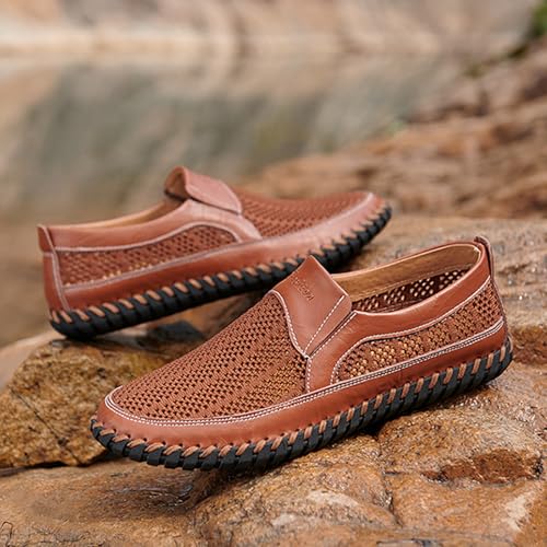 Men's Cutout Mesh Handmade Flat Casual Loafers Comfort Breathable Slip On Hollow Sandals Walking Shoes Outdoor Beach Summer Non Slip Water Shoes 7