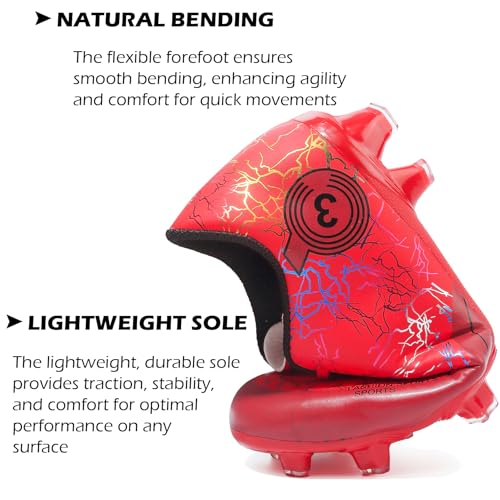 • Versatile and accommodating, our football boots are perfect for teenagers, little kids, and big kids. Ideal for various occasions and terrains such as competitions, running, hiking, walking, soft and firm ground, hard ground, natural grass, rubber playgrounds, and artificial surfaces.