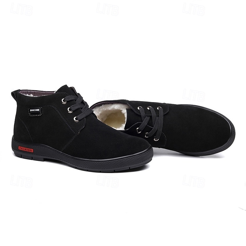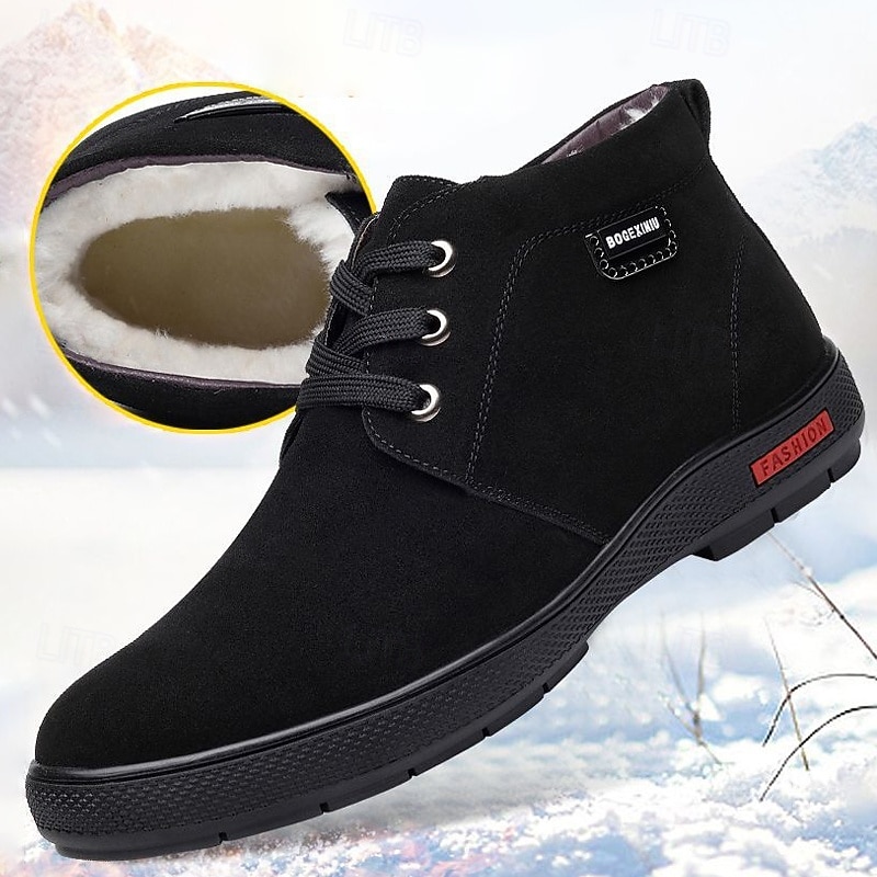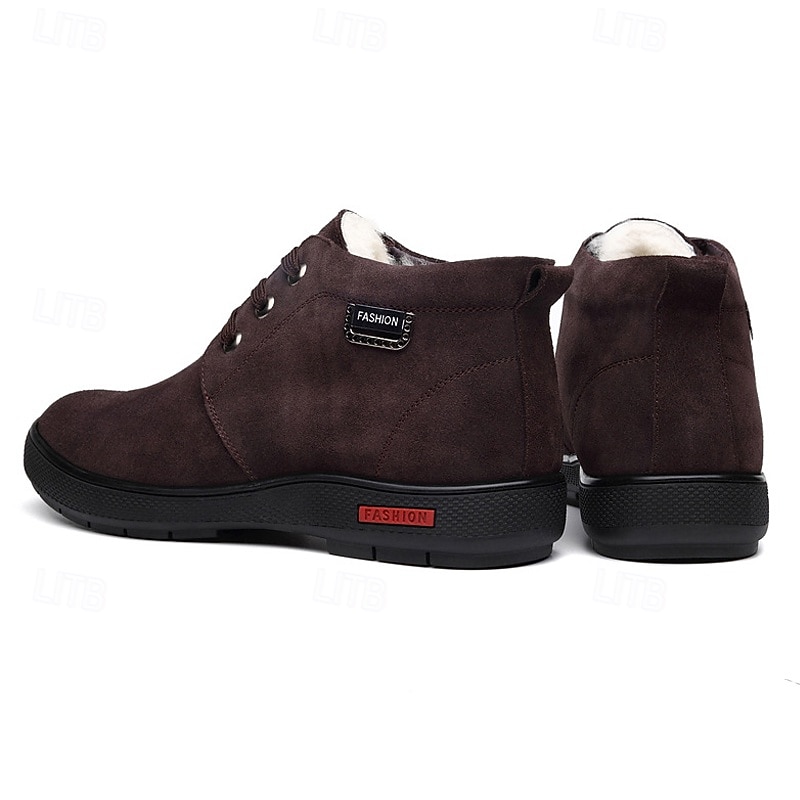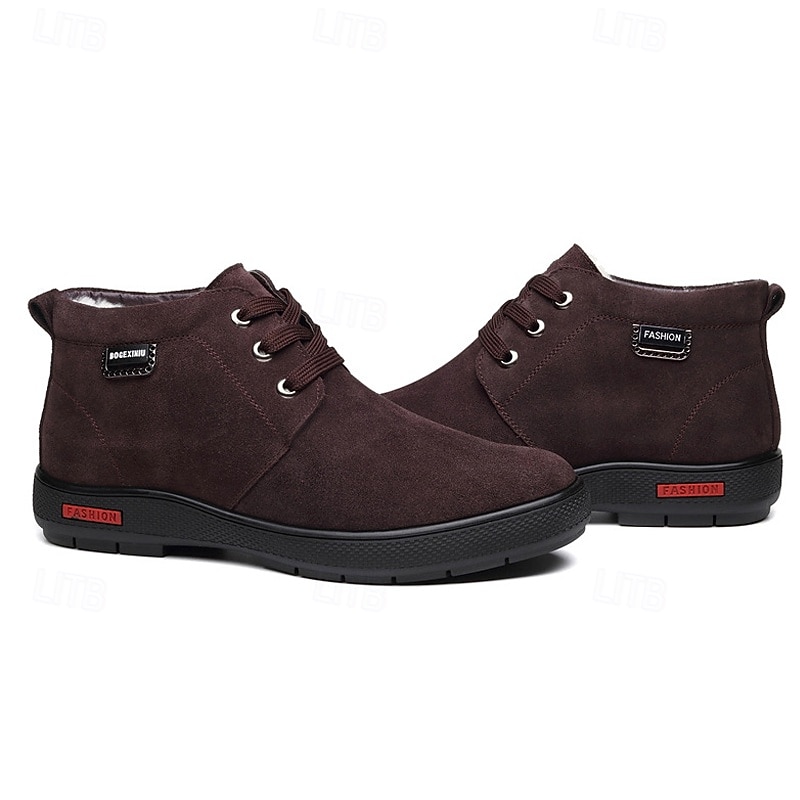 More information about Men's Brown Faux Suede Winter Ankle Boots with Plush Lining – Warm Lace-Up Casual Shoes for Cold Weather