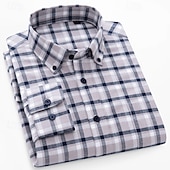 More information about Men's Shirt Dress Shirt Button Down Shirt Plaid Shirt Plaid / Striped / Chevron / Round Daily Wear Corporate Clothing White+khaki Dark Navy Royal Blue Brown Long Sleeve Shirt Collar All Seasons